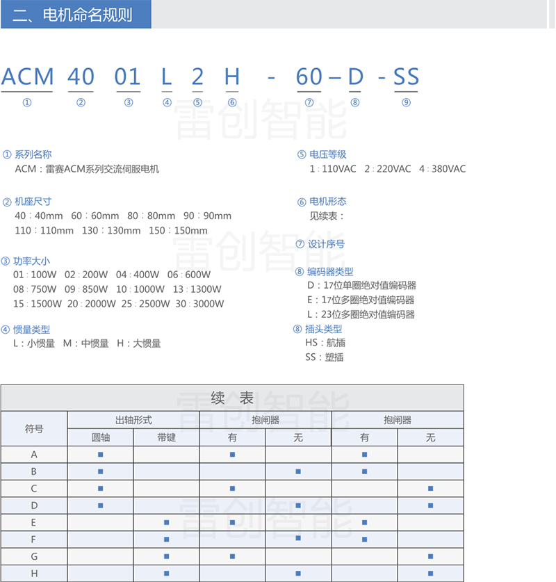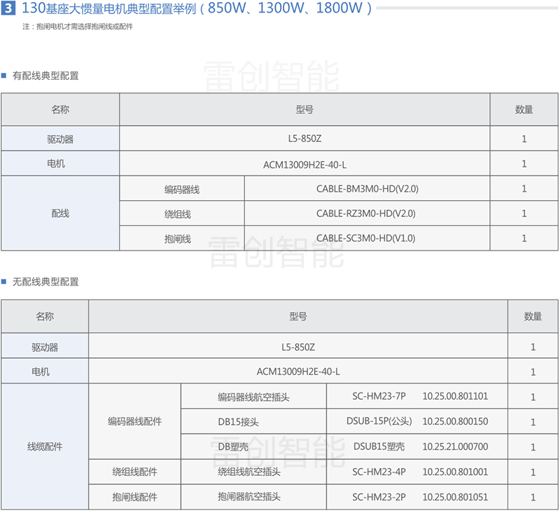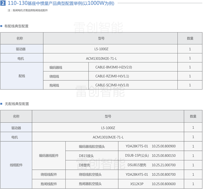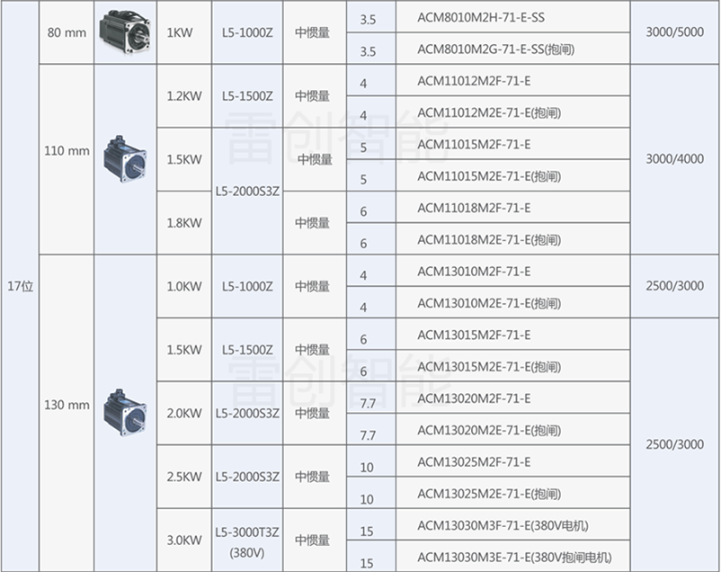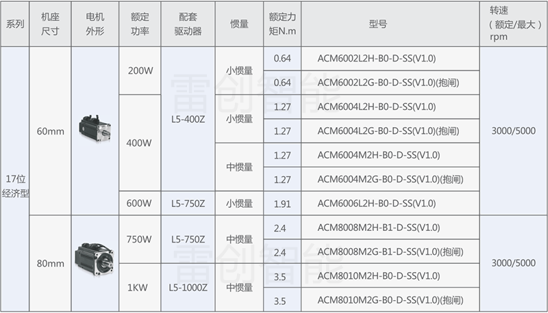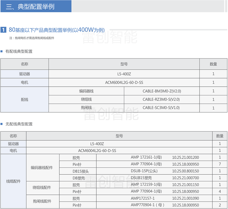 下面针对各系列产品,提供通用的产品选型和配套信息以供参考;特殊应用的优化选型请咨询雷创智能或雷赛智能工程师。