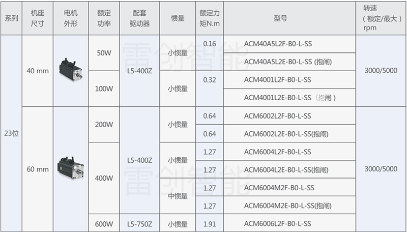 LD5-400和ACS系列低压交流伺服驱动器适配雷赛智能ACM系列低压交流伺服电机和BLM系列直流无刷电机(详见直流伺服页面),功率涵盖25W-400W,可配置多种精度编码器。该系列电机运行极其平稳,振动噪音及发热极小,是步进设备降低噪音、提升效率,有刷伺服设备提升设备可靠性的升级佳选。
