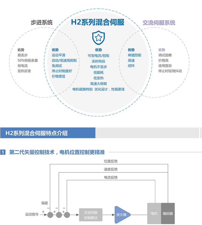 提示:技术上H2系列和HBS系列混合伺服驱动也可以配套部分闭环电机和第三方带编码器的步进电机。但一般配套HSM和HBM系列电机,以提供高性能的混合伺服驱动系统为主。未及事项可联系雷创智能工程师